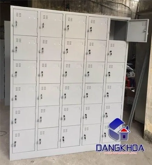 – Tủ locker 30 ngăn được chia làm 30 ngăn riêng biệt. Các ngăn tủ có kích thước bằng nhau và được khóa bằng một ổ khóa riêng. Cánh tủ có ô thoáng gió.